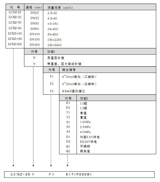 選型:從以上計算(suàn)結果得知,要選擇(zé)的流量計其工況(kuàng)流量範圍爲214~1200m3/h;由說(shuō)明書表1查得,