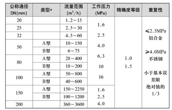 1、流量計規格、基本(ben)參數和性能指标(biāo)(見表1)